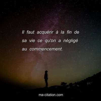 Il faut acquérir à la fin de sa vie ce qu'on a négligé au commencement.
