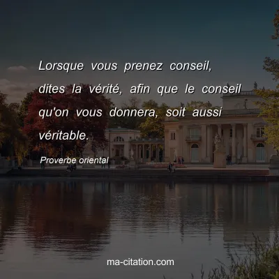 Lorsque vous prenez conseil, dites la vérité, afin que le conseil qu'on vous donnera, soit aussi véritable.