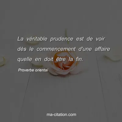 La véritable prudence est de voir dès le commencement d'une affaire quelle en doit être la fin.
