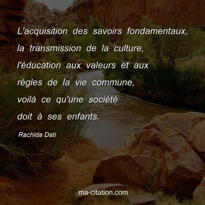 L'acquisition des savoirs fondamentaux, la transmission de la culture, l'éducation aux valeurs et aux règles de la vie commune, voilà ce qu'une société doit à ses enfants.