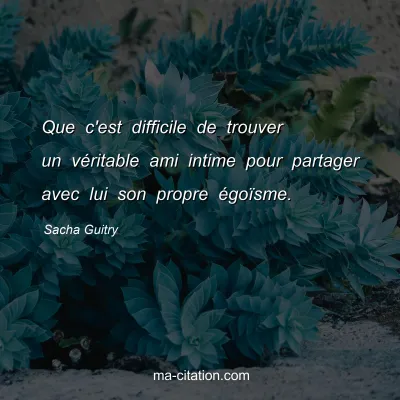 Que c'est difficile de trouver un véritable ami intime pour partager avec lui son propre égoïsme.
