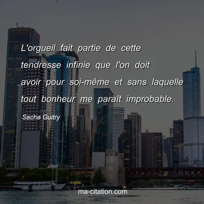 L'orgueil fait partie de cette tendresse infinie que l'on doit avoir pour soi-même et sans laquelle tout bonheur me paraît improbable.