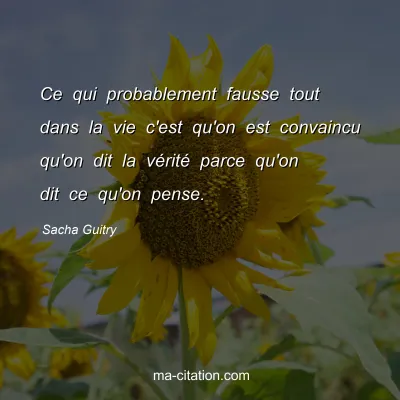 Ce qui probablement fausse tout dans la vie c'est qu'on est convaincu qu'on dit la vérité parce qu'on dit ce qu'on pense.