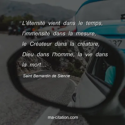 L'éternité vient dans le temps, l'immensité dans la mesure, le Créateur dans la créature, Dieu dans l'homme, la vie dans la mort…