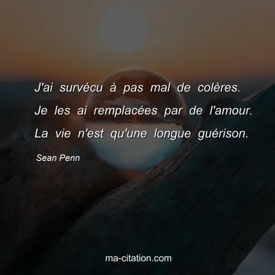 J'ai survécu à pas mal de colères. Je les ai remplacées par de l'amour. La vie n'est qu'une longue guérison.