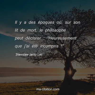 Il y a des époques où, sur son lit de mort, le philosophe peut déclarer : "Heureusement que j'ai été incompris !"
