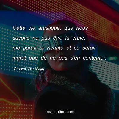 Cette vie artistique, que nous savons ne pas être la vraie, me paraît si vivante et ce serait ingrat que de ne pas s'en contenter.