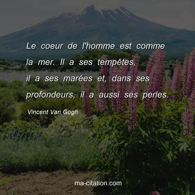 Le coeur de l'homme est comme la mer. Il a ses tempêtes, il a ses marées et, dans ses profondeurs, il a aussi ses perles.