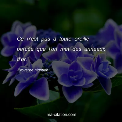 Ce n'est pas à toute oreille percée que l'on met des anneaux d'or.